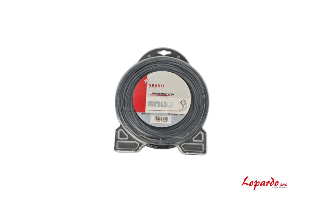 Il filo per decespugliatore Granit è progettato per resistere alle sollecitazioni più intense e agli ambienti più ostili. Realizzato in nylon copolimero di alta qualità presenta un profilo quadrato, una lunghezza rotolo di 32 m e un peso di 464g. Questo filo è l'investimento che garantisce meno tempi morti e performance di taglio costanti, trasformando ogni sessione di lavoro in un successo. Scegli il filo per decespugliatore Granit capace di adattarsi perfettamente ai diversi impieghi, dalla rifinitura di bordi alla pulizia di erba folta e arbusti leggeri.