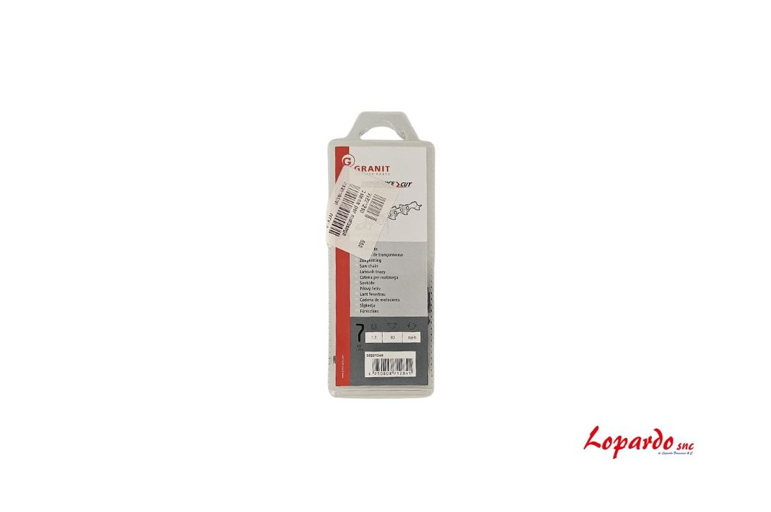 Catena professionale Endurance Cut Granit ad alta resistenza, progettata per la massima durabilità e velocità di taglio. Passo 3/8" LoPro e spessore 1.3mm con 40 maglie di trazione. Presente l'elemento di trasmissione cruciale per la sicurezza, progettato per interrompere o limitare la forza in caso di sovraccarico, prevenendo danni costosi ai componenti della macchina e proteggendo l'operatore. Con un peso di 164g, La speciale forma del dente semitondo offre un taglio netto e veloce, assicurando la massima rimozione del truciolo e prestazioni eccellenti su legni duri. Ideale per uso intensivo e legno duro. Minore usura, maggiore efficienza.