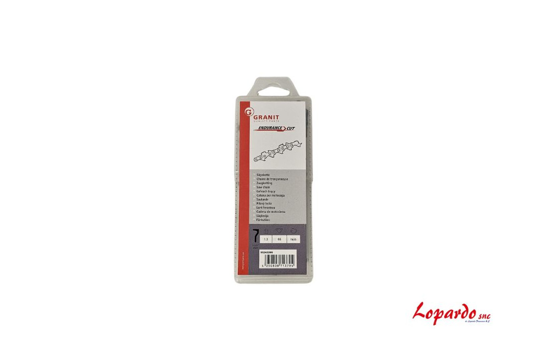 Catena professionale Endurance Cut Granit ad alta resistenza, progettata per la massima durabilità e velocità di taglio. Passo 325" e spessore 1.3mm con 66 maglie di trazione. Presente l'elemento di trasmissione cruciale per la sicurezza, progettato per interrompere o limitare la forza in caso di sovraccarico, prevenendo danni costosi ai componenti della macchina e proteggendo l'operatore. Con un peso di 288g, La speciale forma del dente quadro offre un taglio netto e veloce, assicurando la massima rimozione del truciolo e prestazioni eccellenti su legni duri. Ideale per uso intensivo e legno duro. Minore usura, maggiore efficienza.