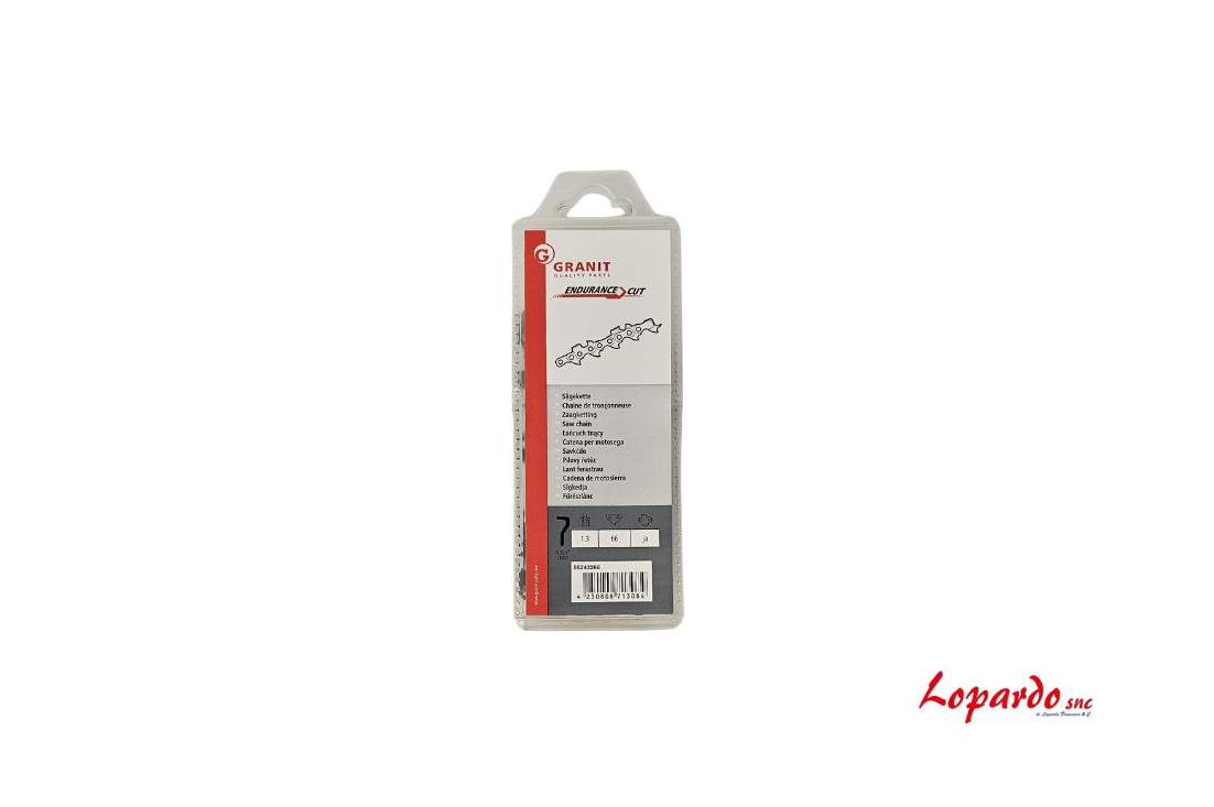 Catena professionale Endurance Cut Granit ad alta resistenza, progettata per la massima durabilità e velocità di taglio. Passo 325" e spessore 1.3mm con 66 maglie di trazione. Presente l'elemento di trasmissione cruciale per la sicurezza, progettato per interrompere o limitare la forza in caso di sovraccarico, prevenendo danni costosi ai componenti della macchina e proteggendo l'operatore. Con un peso di 290g, La speciale forma del dente semitondo offre un taglio netto e veloce, assicurando la massima rimozione del truciolo e prestazioni eccellenti su legni duri. Ideale per uso intensivo e legno duro. Minore usura, maggiore efficienza.