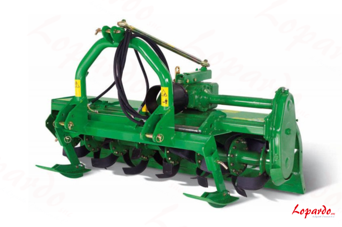 La caratteristica più importante di questa macchina è la possibilità di regolarne la posizione di lavoro in senso trasversale, grazie ad un martinetto che l’operatore può agevolmente azionare dal posto di guida della trattrice. Il rotore viene invece azionato dalla presa di forza mediante albero cardanico. La potenza massima suggerita è di 70 HP. Fra le specifiche tecniche citiamo: il doppio telaio scatolato, la trasmissione laterale ad ingranaggi, lo speciale sistema ermetico di tenuta dell’olio sui supporti del rotore, grazie al quale la macchina può lavorare in condizioni proibitive.